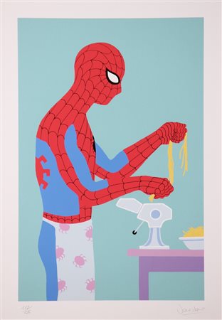 VENEZIANO GIUSEPPE (n. 1971) La passione del ragno e Spider spinaro. 2008. Serigrafia. Cm 50,00 x 35,00. Lotto composto da due serigrafie.112/125 e 69/125 , firma e tiratura a matita in basso a destra.