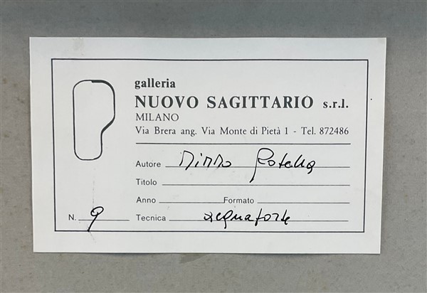 Galleria Nuovo Sagittario, Milano (etichetta al retro); collezione privata, Milano
