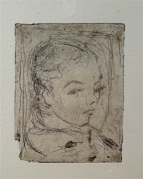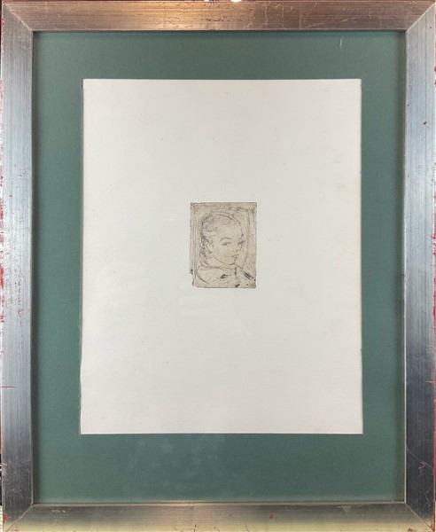 Ignoto "Volto di donna" acquaforte (lastra cm 8,3x6,3; foglio cm 34x26,5) iscri