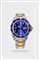 Cassa in acciaio con lunetta e corona di carica in oro. Quadrante blu che vira al viola detto “Purple dial” con indici geometrici luminescenti applicati, datario al 3 ed indicazione dei secondi continui al centro.