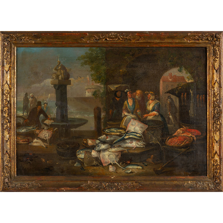 Precedente Lotto 0437 Successivo Aste Boetto - Via Mura dello Zerbino 10R, 16122 Genova Arredi di un appartamento in Città e Antiquariato Arredi di un appartamento in Città e Antiquariato martedì 18 giugno 2024 ore 15:00 (UTC +01:00) DIPINTO 'Mercato del pesce' olio sec.XVIIIcm. 66x48