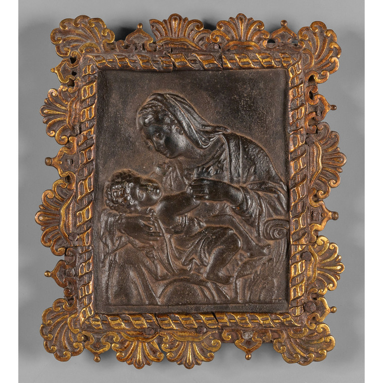 'Madonna con Bambino' due placche in bronzo sbalzato del sec.XVIII e XIX