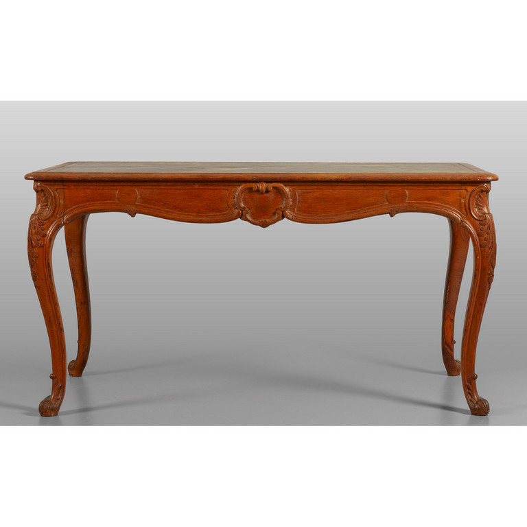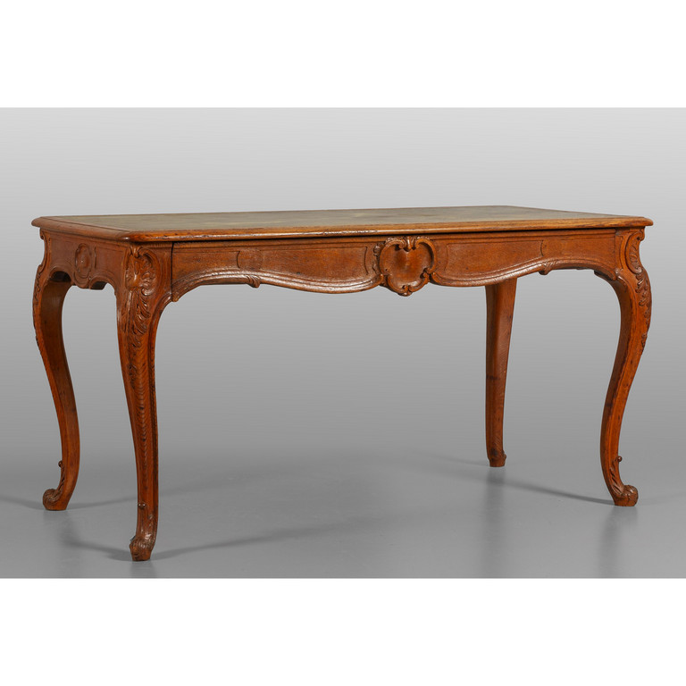 Scrivania in stile Luigi XIV in rovere intagliato piano in pelle Francia sec.XIX