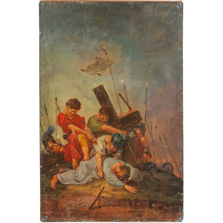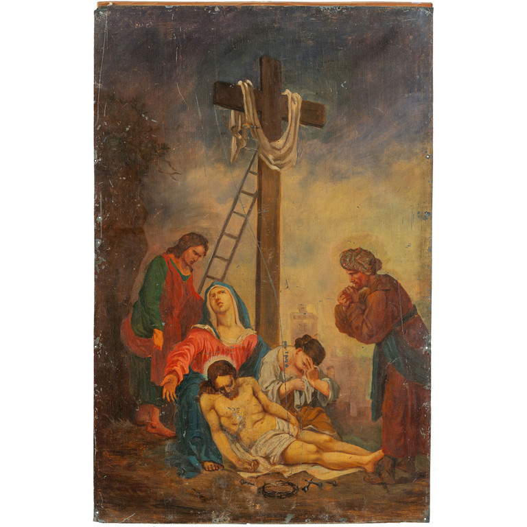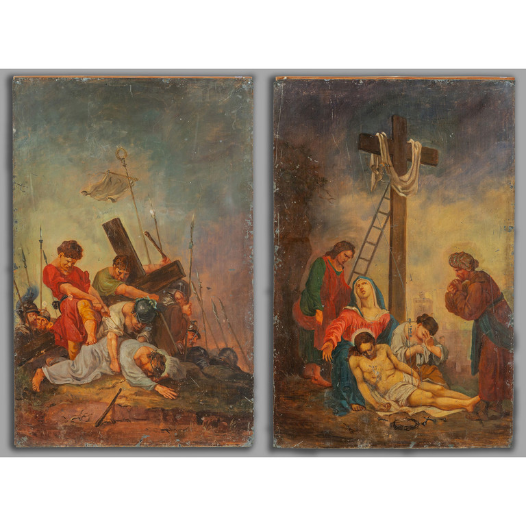 'Salita al calvario' e 'Cristo Deposto' coppia di olii su latta sec.XIX
