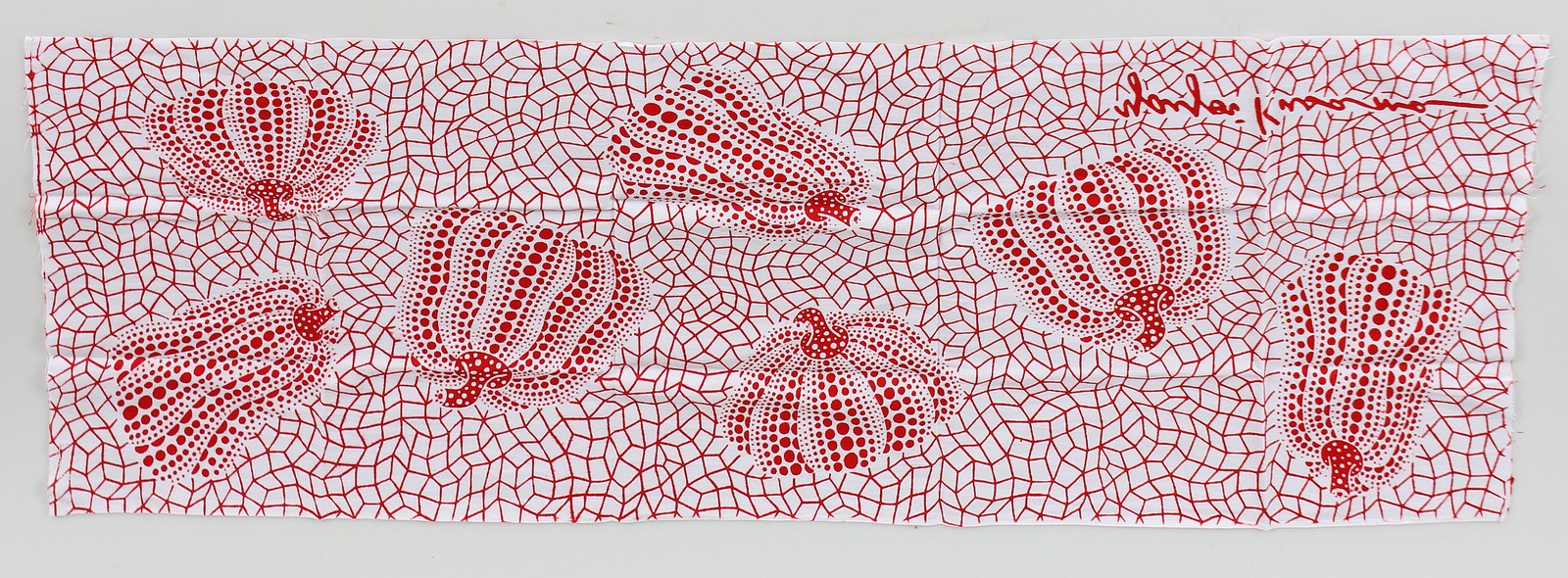 KUSAMA YAYOI (n. 1929) Tea Towel. Pumpkin. Oggetto. Cm 34,00 x 90,00. Firma a stampa in basso.