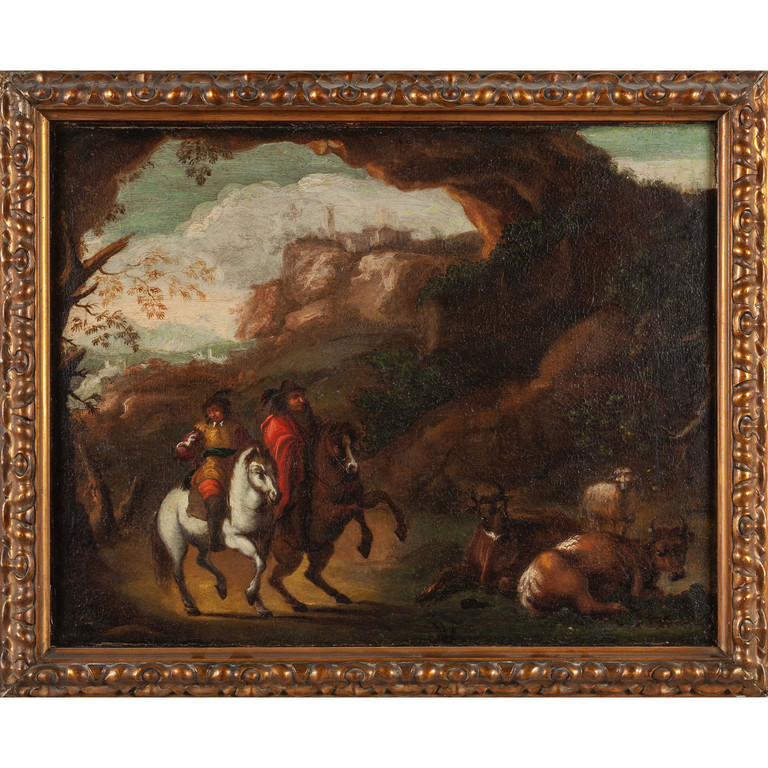 Precedente Lotto 0578 Successivo Aste Boetto - Via Mura dello Zerbino 10R, 16122 Genova Arredi di un appartamento in Città e Antiquariato Arredi di un appartamento in Città e Antiquariato martedì 18 giugno 2024 ore 15:00 (UTC +01:00) DIPINTO 'Cavalieri' olio sec.XVIIIcm. 70x55