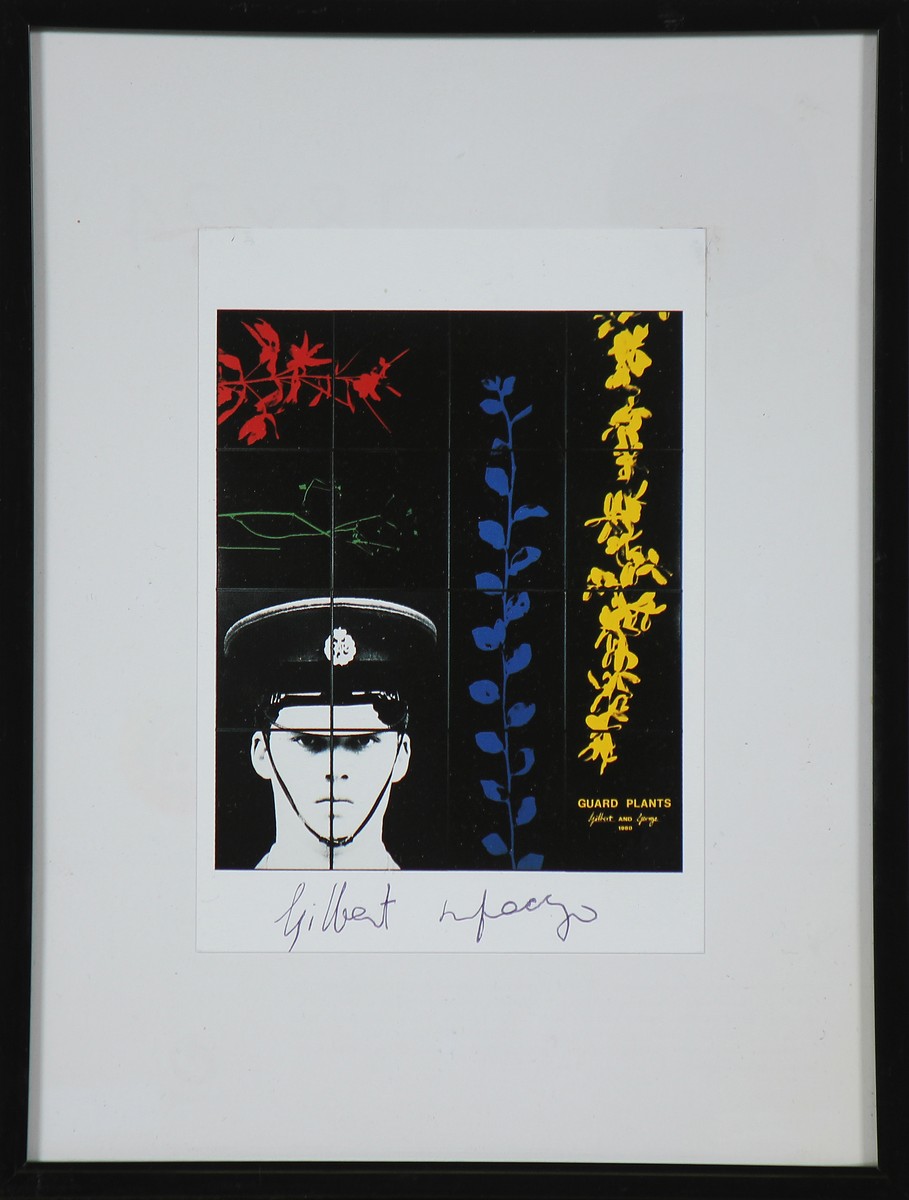 GILBERT & GEORGE Senza titolo. Cartolina. Cm 10,50 x 15,00. Firma in basso a penna. Cornice presente