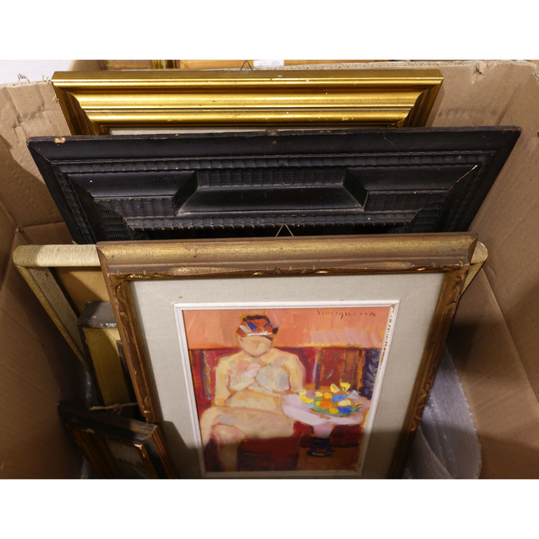 Cornice in legno ebanizzato e cinque dipinti diversi
