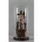 Crocefissione gruppo in cera con base in cartapesta all'interno di una campana in vetro