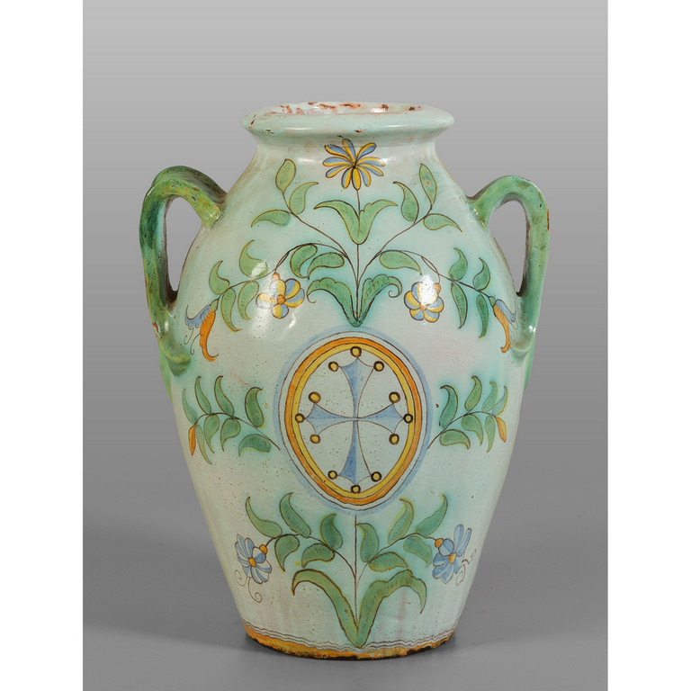 Giara in ceramica a decorazione policroma su fondo bianco inizi sec.XX