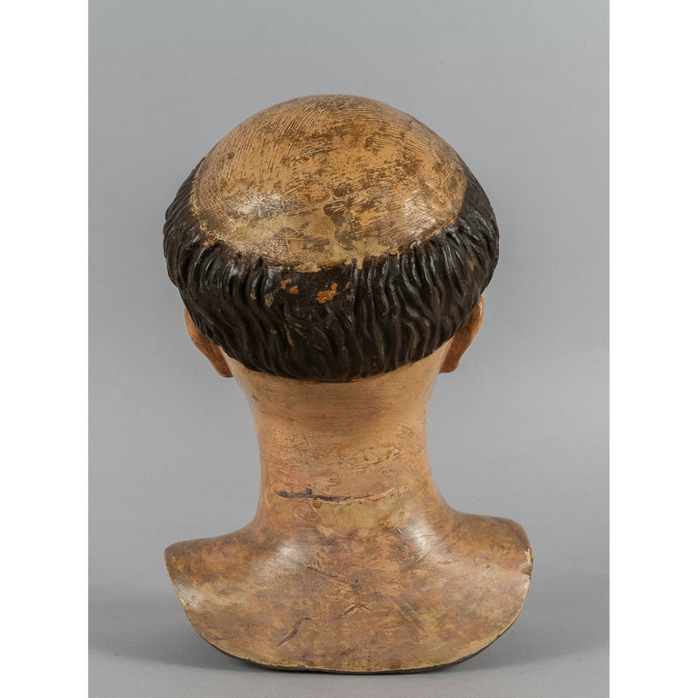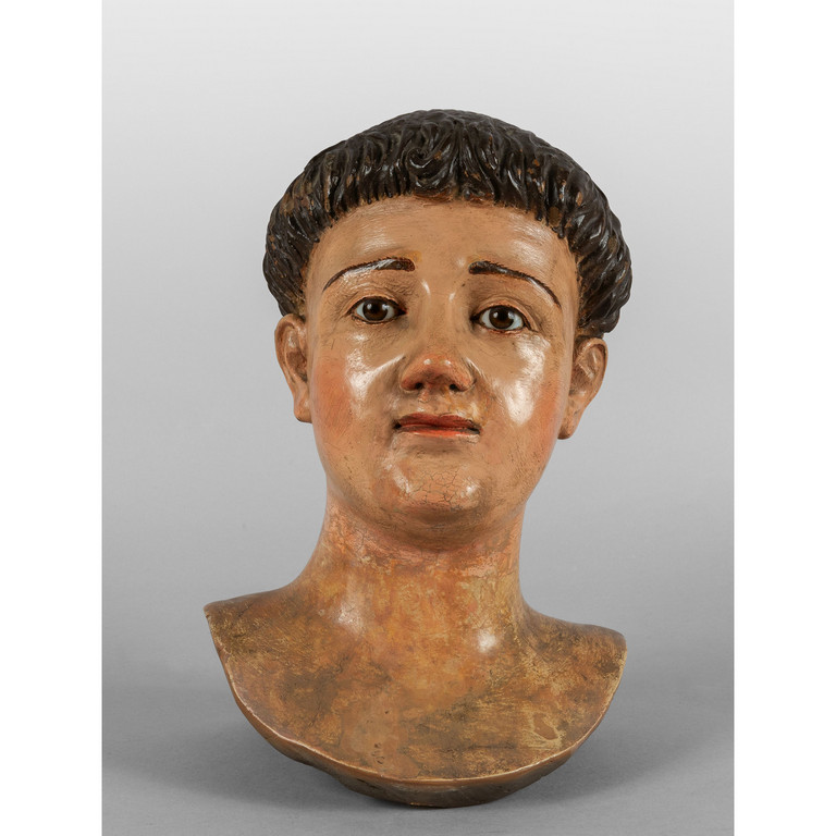 Testa di prelato scultura in terracotta laccata occhi in pasta di vetro sec.XVIII