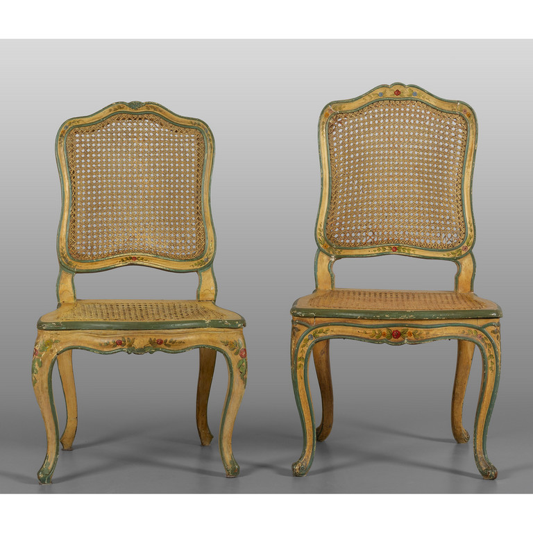 Due sedie Luigi XV con sedile e schienale a cannè sec.XVIII (pittura di epoca posteriore)