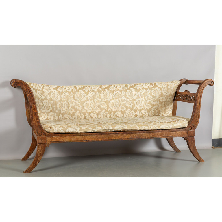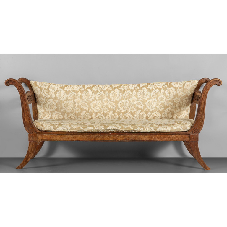 Divanetto Carlo X in noce gambe a sciabola Genova I metà sec.XIX
