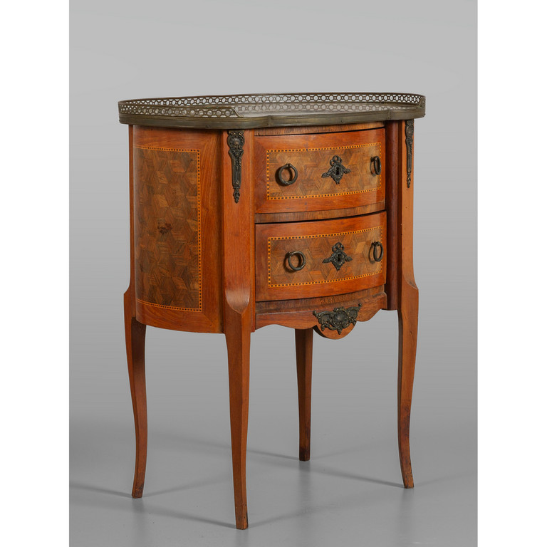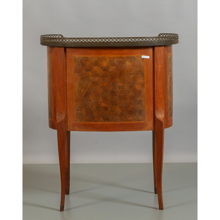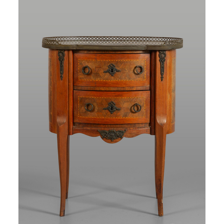 Mobiletto da centro di forma ovale in stile Luigi XVI piano in marmo con ringhierina Francia fine sec.XIX