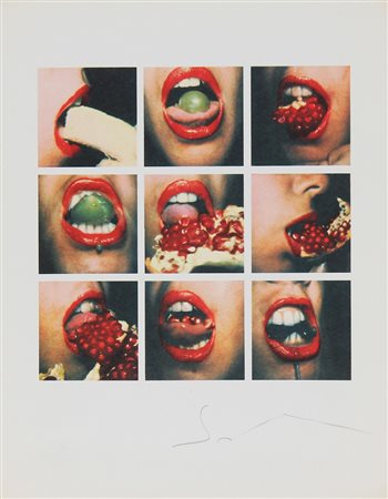 SCHIFANO MARIO (1934 - 1998) Senza titolo. Fotolitografia. Cm 23,00 x 30,00. Esemplare 1734. Riproduzione fotolitografica dell' opera originale "Il gusto" eseguita per la serie "I cinque sensi" di Bolaffi arte. Firma originale in basso a matita. Ed, BolaffiArte. Anni '70. Timbro a secco BolaffiArte in basso a sinistra. Tiratura al retro.