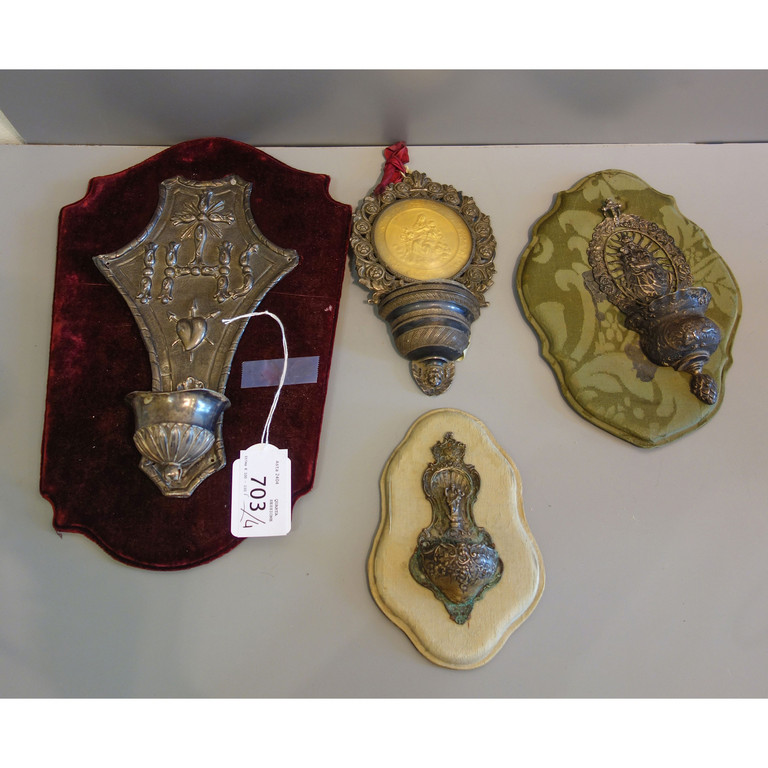 Quattro piccole acquasantiere in argento di misure ed epoche diverse