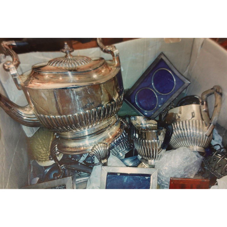 Scatola magica di una cinquantina di coltelli in argento e vari oggetti in metallo argentato