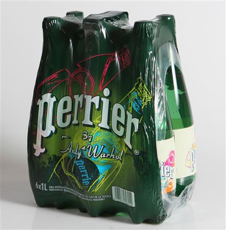 WARHOL ANDY (1928 - 1987) Perrier by Andy Warhol. Plastica. Cm 25,00 x 30,00. Confezione da n. 6 bottiglie di acqua minerale naturale Perrier con etichetta d'autore in occasione dei 150 anni di attività dell'azienda.