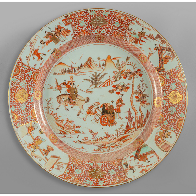 Grande piatto in porcellana di Cina decorato con figura centrale su fondo bianco sec.XX