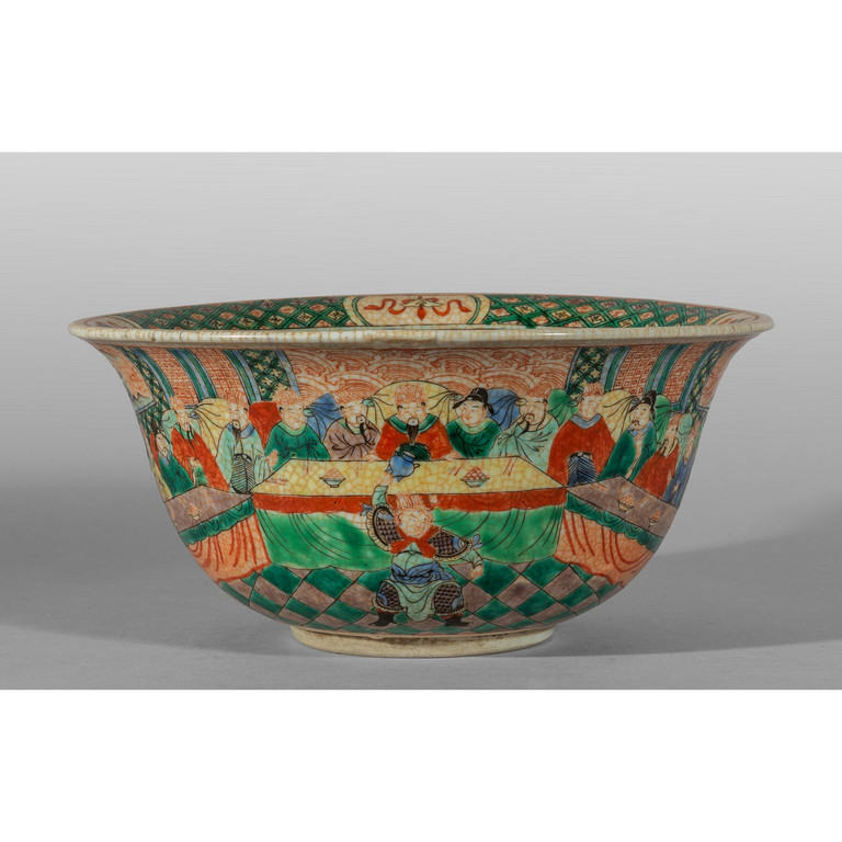 Ciotola in porcellana decorata in policromia con scena di vita di corte Cina sec.XX
