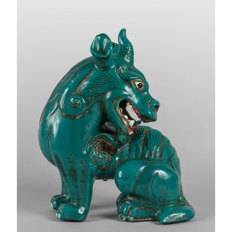 Kilin in ceramica invetriata a fondo verde sec.XIX