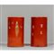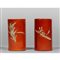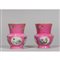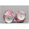 Coppia di vasi in porcellana di Cina bianco e arancio (h.cm.11) e coppia di vasi in porcellana di Cina rosa con riserve decorate con fiori e uccellini (h.cm.10 5)