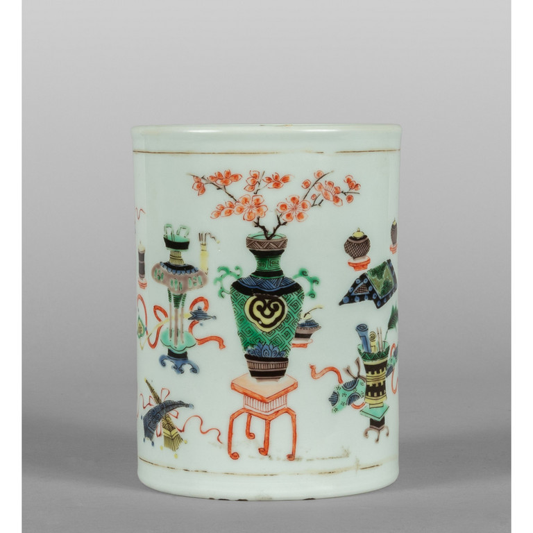 Portapennelli in porcellana famiglia Verde decorato con vasi Cina sec.XVIII/XIX