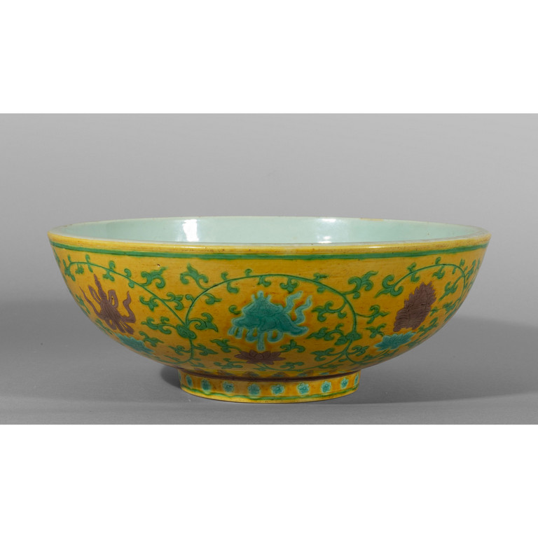 Coppa in porcellana a quattro colori decorata con simboli taoisti Cina sec.XIX