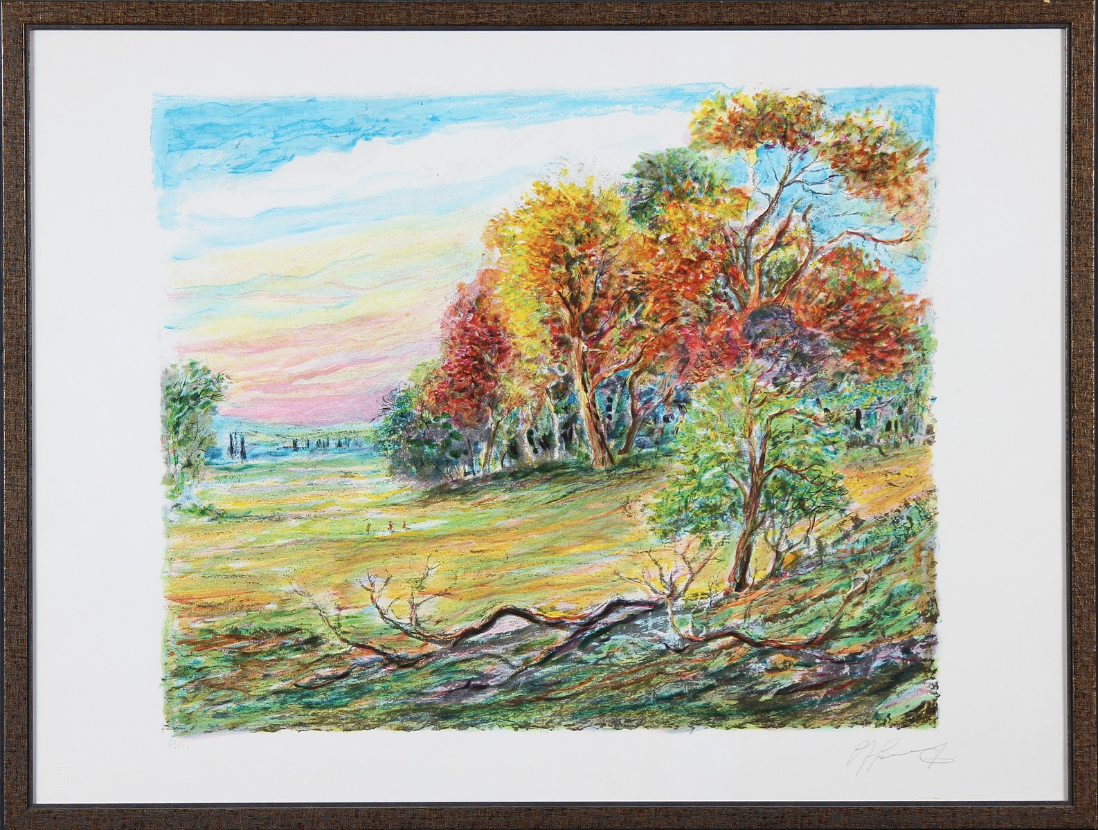GONZAGA GIOVAN FRANCESCO (1921 - 2007) Paesaggio. Litografia. Cm 79,00 x 59,00. Prova d'autore a matita in basso a sinistra. Firma a matita in basso a destra. Cornice presente