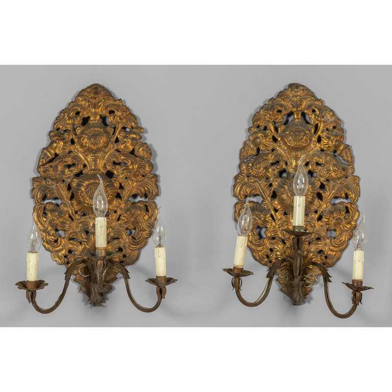 Coppia di portapalme in lamierino a tre bracci sec.XVIII