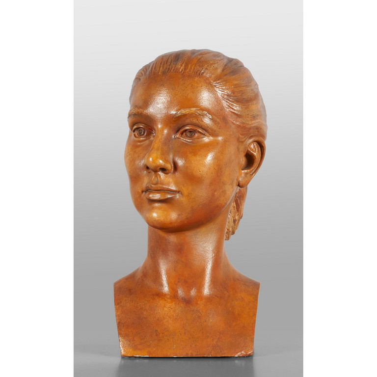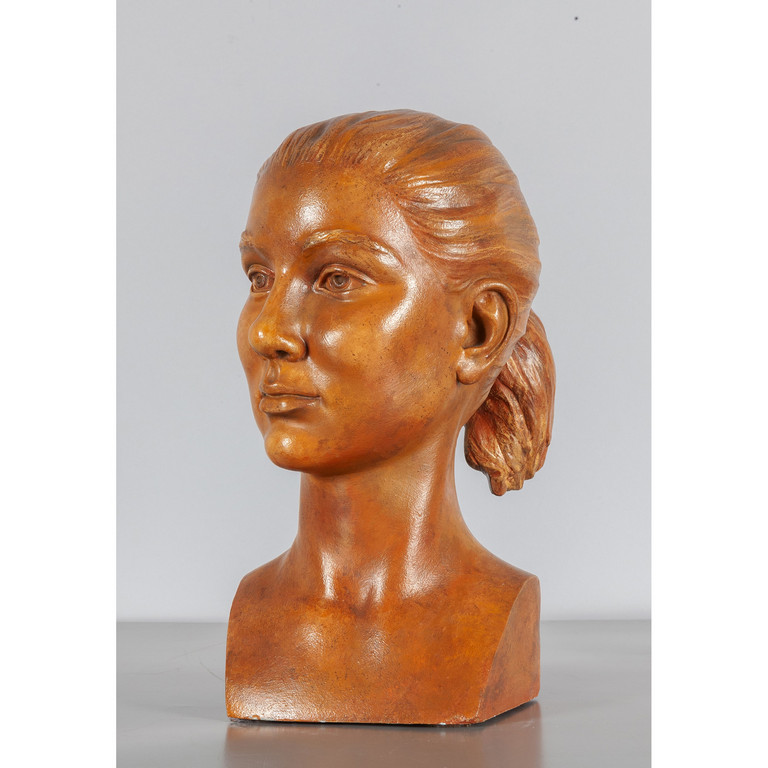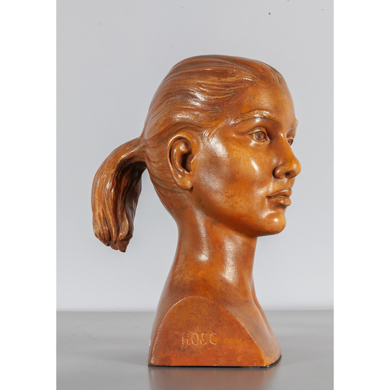 Testa femminile scultura in marmo dipinto f.to Bosc