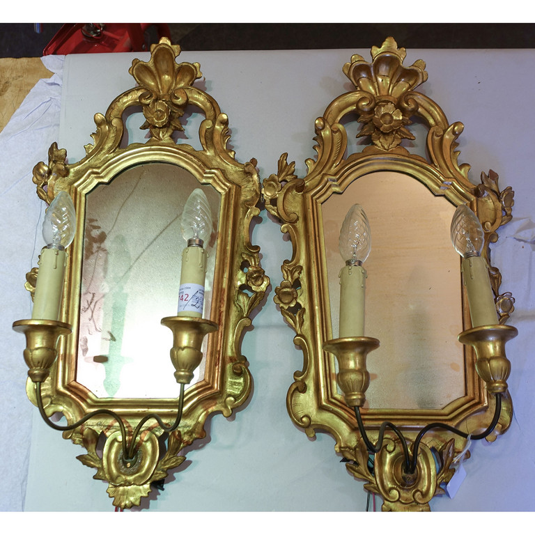 Coppia di apliques Luigi XV in legno intagliato e dorato Emilia sec.XVIII
