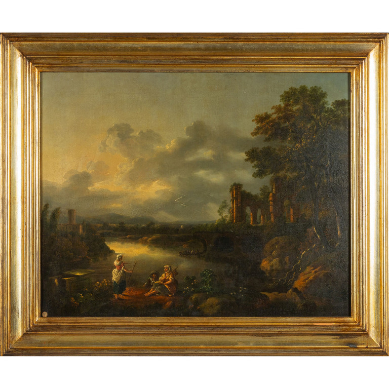 J.Tobias Young (1755-1824) 'Aspettando il temporale' olio f.to e d.to 1791 in b. a s.