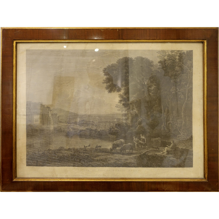 'Rovine di edifici romani' e 'La giustizia di Paride' coppia di stampe