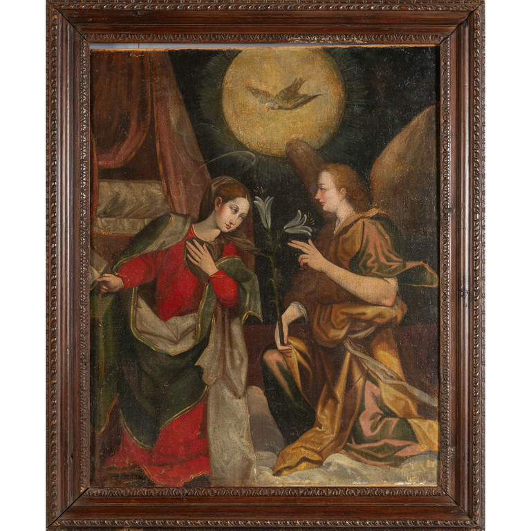 Precedente Lotto 0974 Successivo Aste Boetto - Via Mura dello Zerbino 10R, 16122 Genova ASTA DI ARTE ORIENTALE e ANTIQUARIATO Asta di Arte Orientale e Antiquariato mercoledì 19 giugno 2024 ore 10:30 (UTC +01:00) DIPINTO Scuola piemontese sec.XVIII 'Annunciazione' oliocm. 75x90