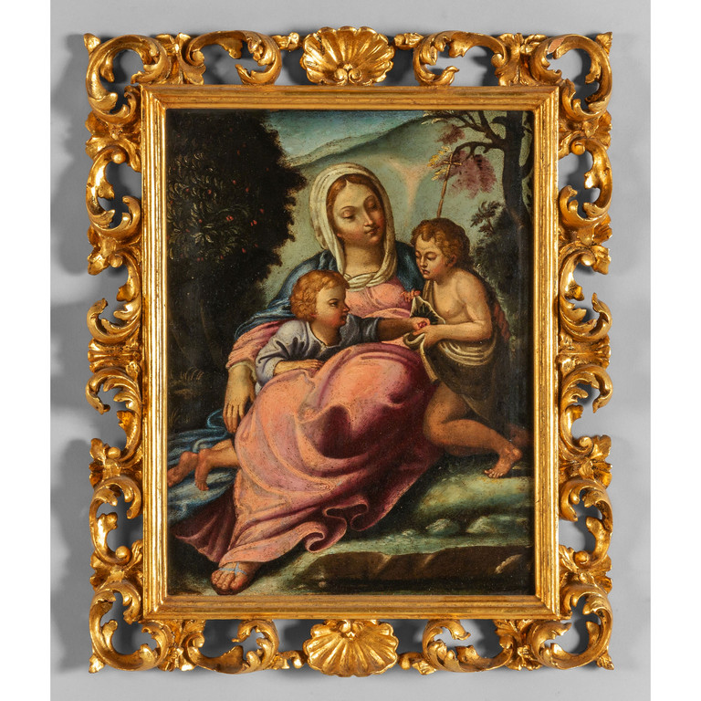 'Madonna con Bambino e San Giovannino' olio su rame sec.XVIII