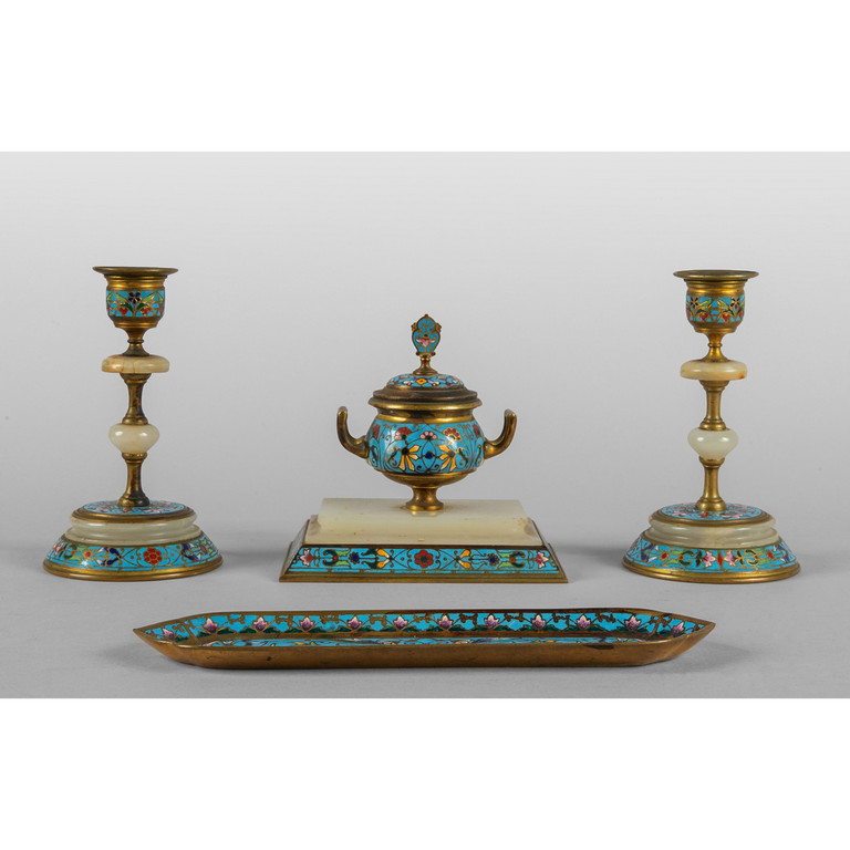 Servizio da scrivania composto da quattro pezzi in bronzo cloisonnè arte russa sec.XIX