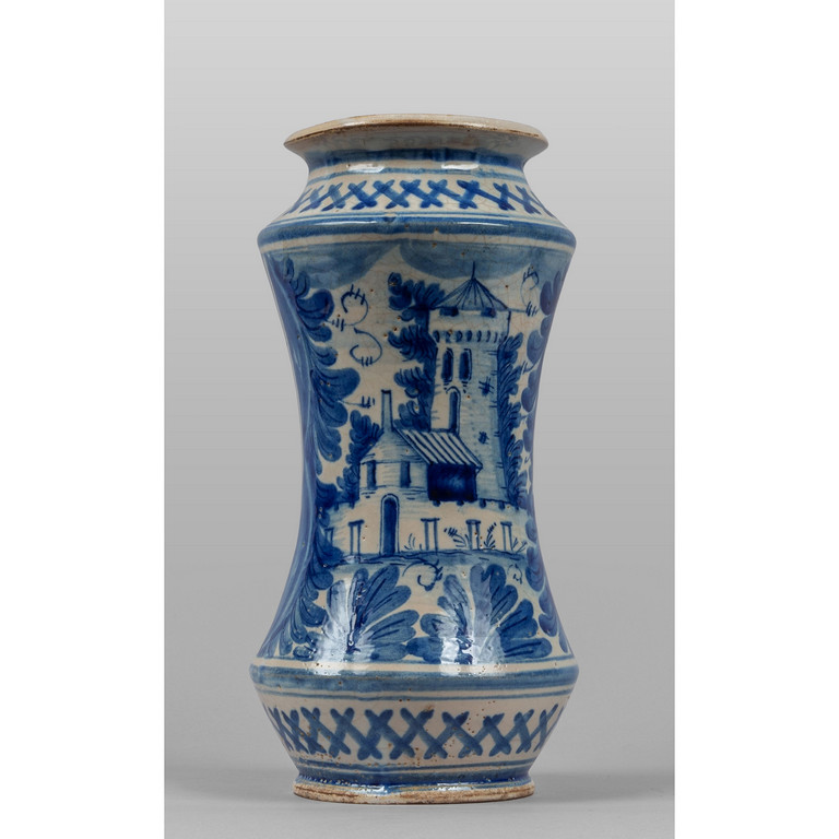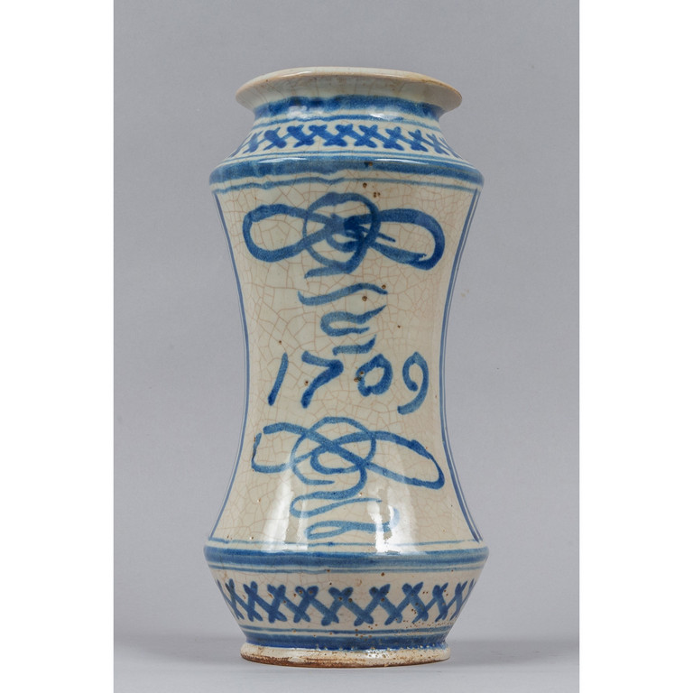 Precedente Lotto 1032 Successivo Aste Boetto - Via Mura dello Zerbino 10R, 16122 Genova ASTA DI ARTE ORIENTALE e ANTIQUARIATO Asta di Arte Orientale e Antiquariato mercoledì 19 giugno 2024 ore 10:30 (UTC +01:00) OGGETTISTICA Albarello in maiolica bianco e blu datato 1709h.cm.27