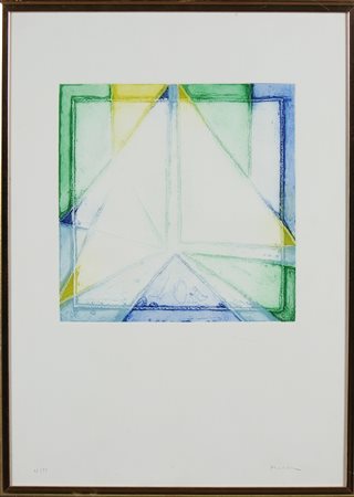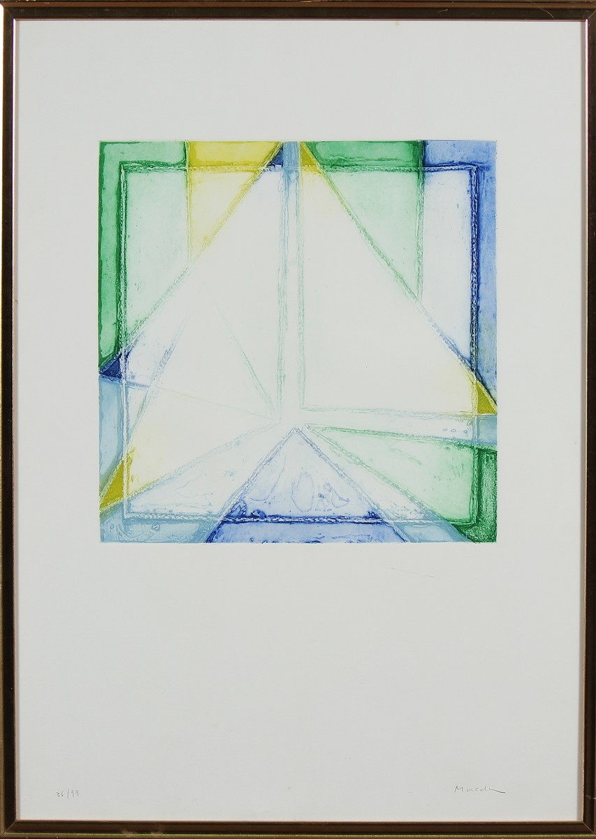 MONCADA IGNAZIO (n. 1932) Senza Titolo. Acquaforte a colori. Cm 50,00 x 70,00. 36/99. Tiratura a matita in basso a sinistra. Firma a matita in basso a destra. Dimensione lastra 35x35. Cornice presente
