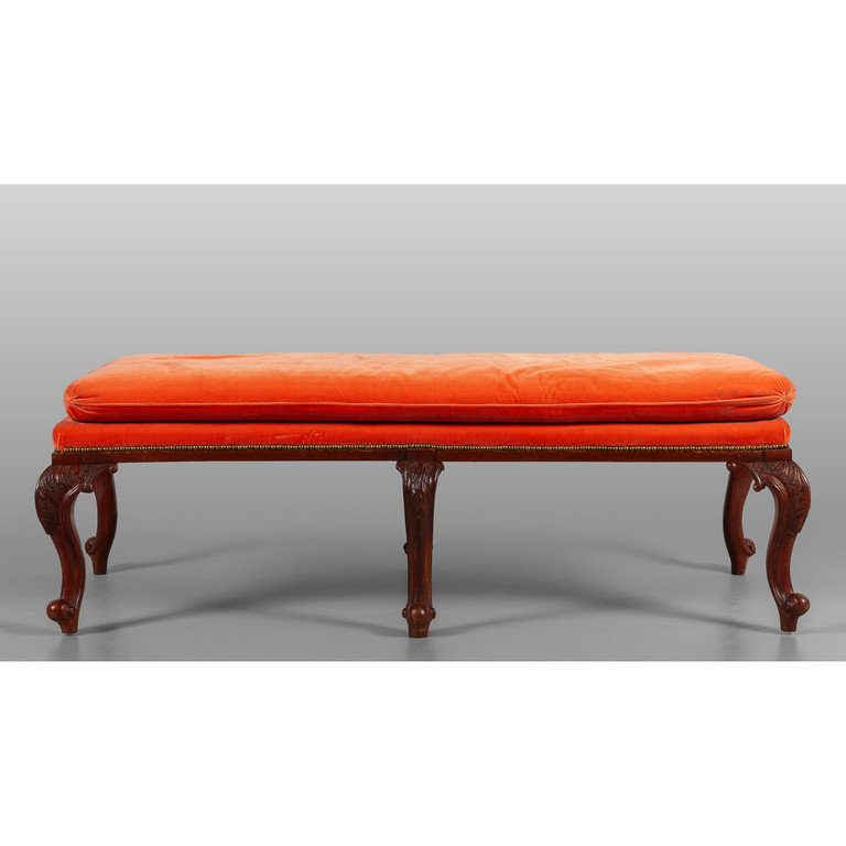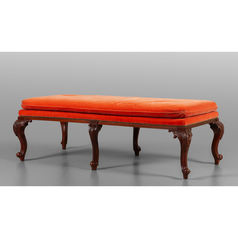 Panchetta a sei gambe in stile antico con imbottitura di velluto rosso
