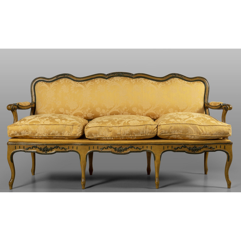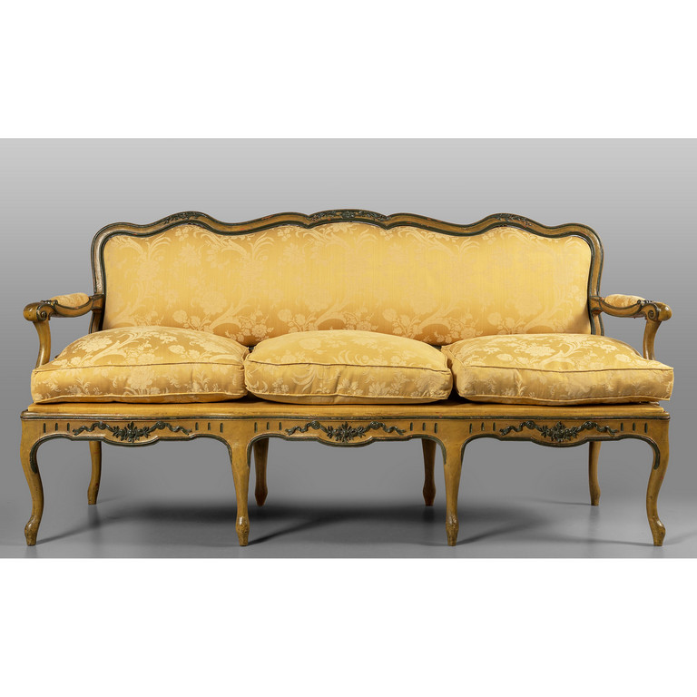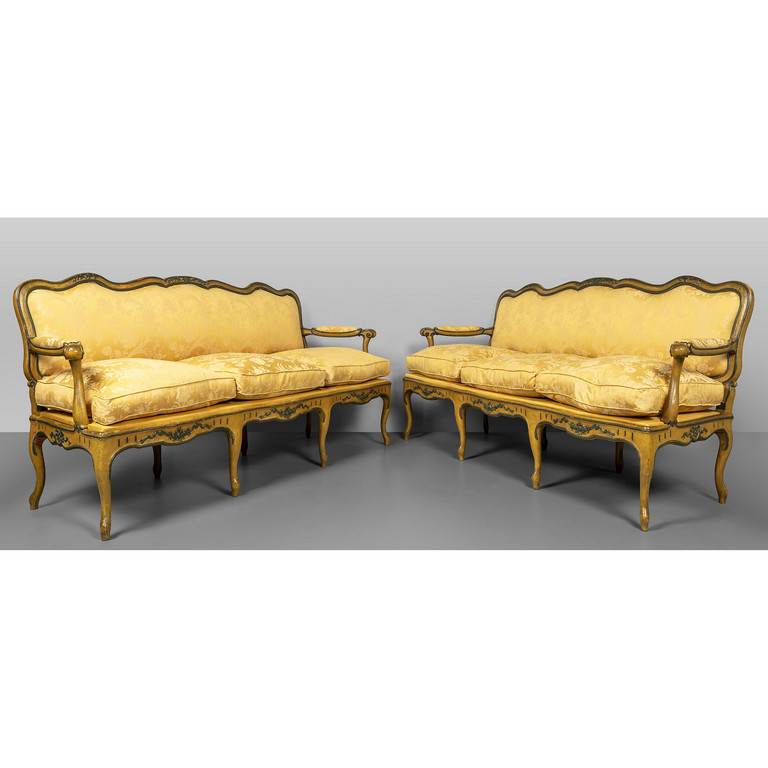 Coppia di divani Luigi XV in legno intagliato e laccato Lombardia sec.XVIII