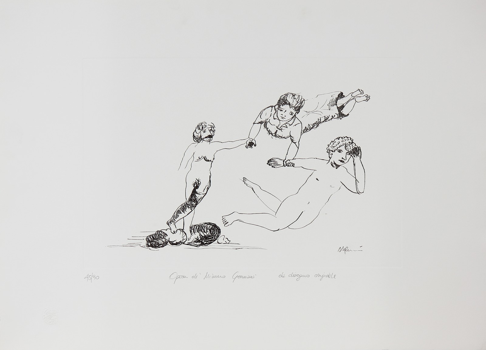 ARTISTI VARI Cartella composta da n. 3 Grafiche. Litografie. Cm 50,00 x 70,00. Germanà, 45/90, acquaforte, firma a a stampa in basso a destra, timbro a secco Edizione d'arte Pegaso; Ligabue, puntasecca, 155/199, timbro a secco di Antonio Ligabue; Boero, 77/130, tiratura e firma a stampa in basso.