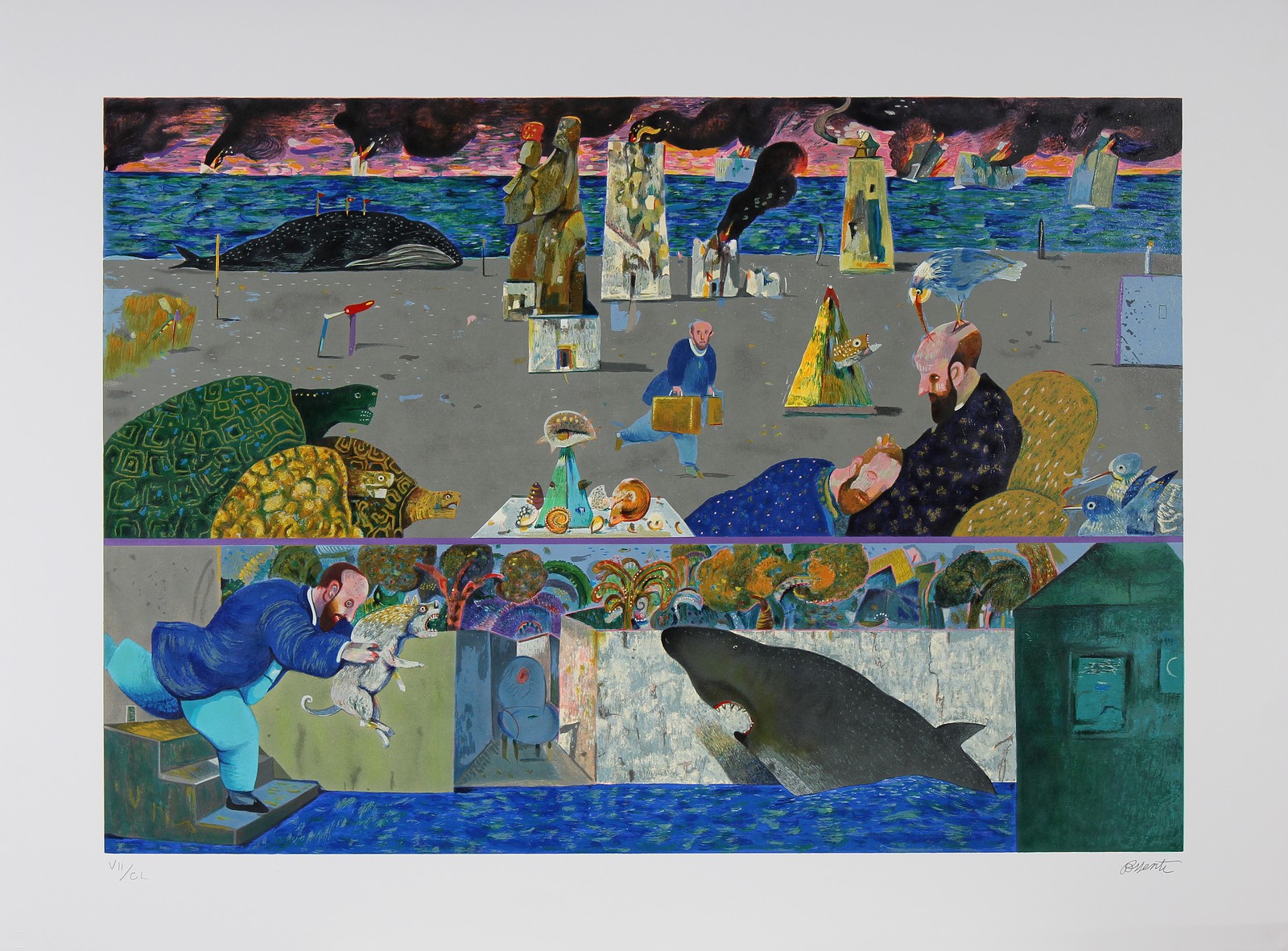 ARTISTI VARI Cartella composta da n. 3 Grafiche. Litografie. Cm 160,00 x 110,00. Faccincani, firma a matita in basso a destra, cm 70x100; Masia, V/L, tiratura e firma a matita in basso, cm 72x101; Possenti, VII/CL, tiratura e firma a matita in basso, cm 90x120.