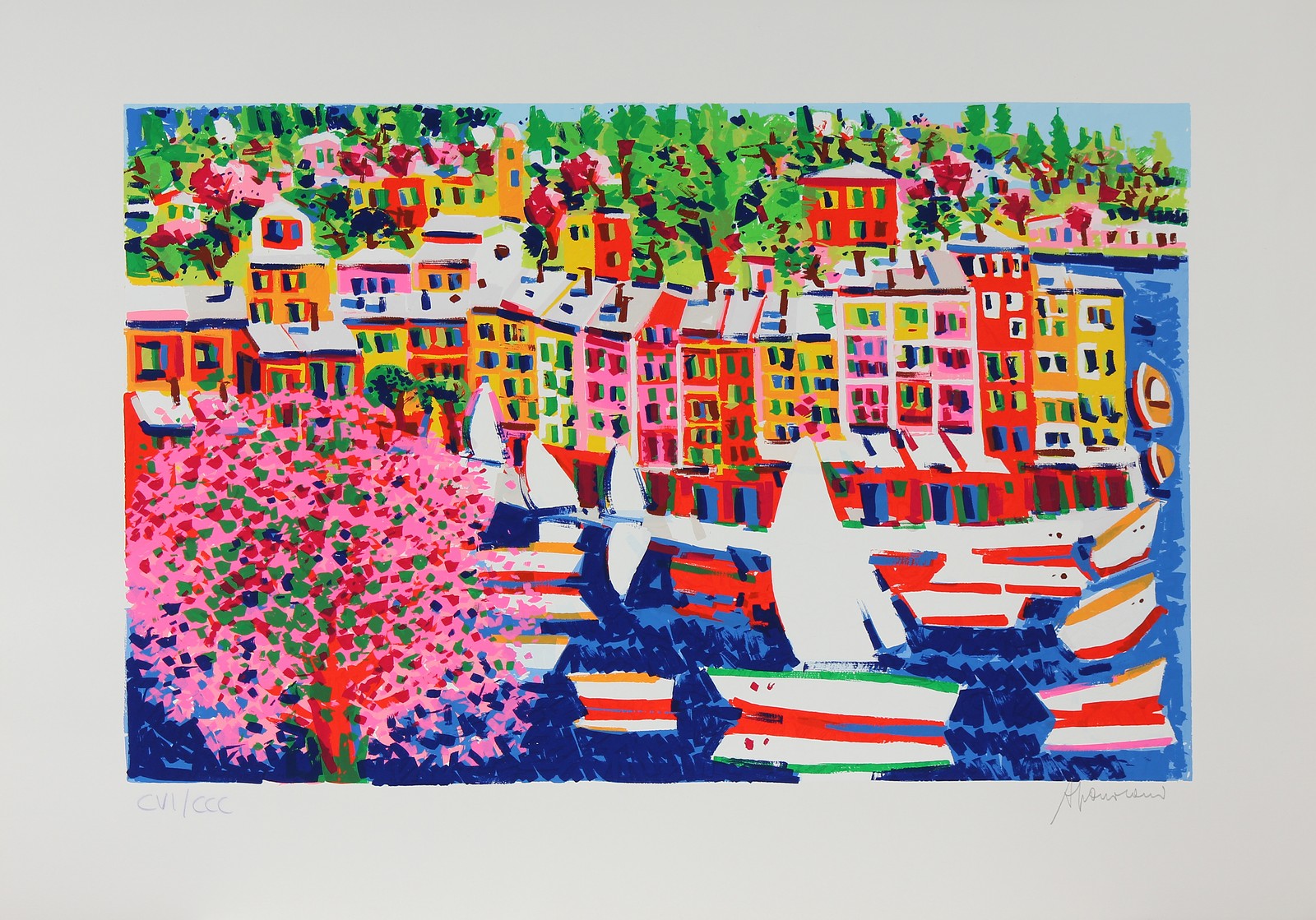 ARTISTI VARI Cartella composta da n. 6 Grafiche. Litografie. Cm 80,00 x 110,00. Trombini, 131/150, firma e tiratura in basso, cm 33x100; Leo Borghi, 3/120 e p.d.a., firma e tiratura in basso, cm 52x74; Alinari 131/200, firma e tiratura in basso, al retro Certificato di autenticità di Colombo Arte Edizioni, Milano e relativo numero di Archivio, anno 2003, cm 70x70; Faccincani, CVI/CCC, firma a matita in basso a destra, cm 70x100; Trombini, firma in basso a destra, cm 70x100.