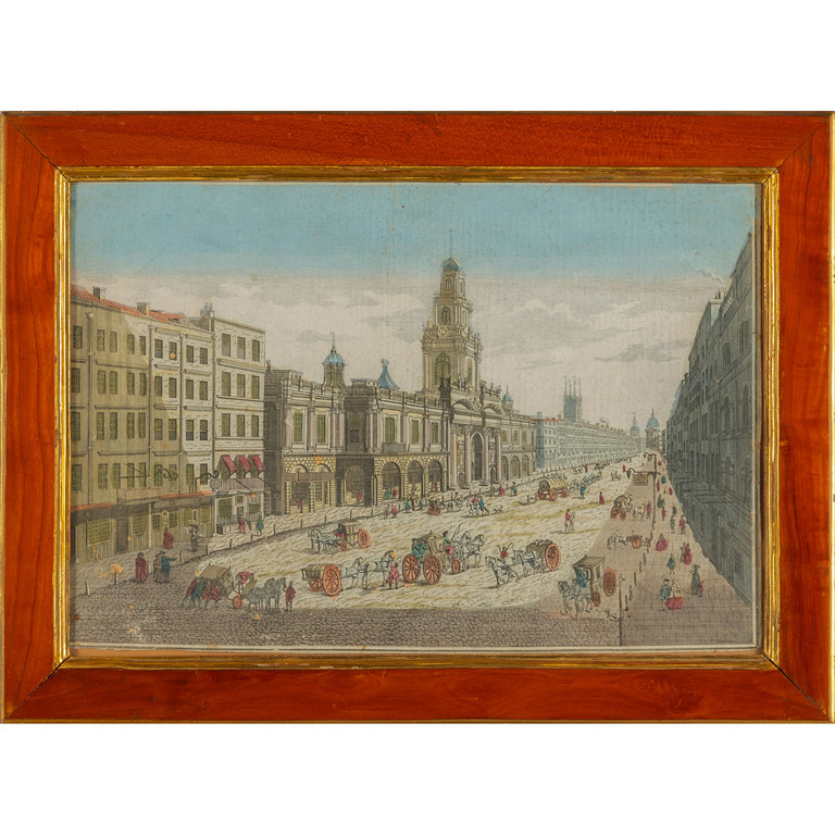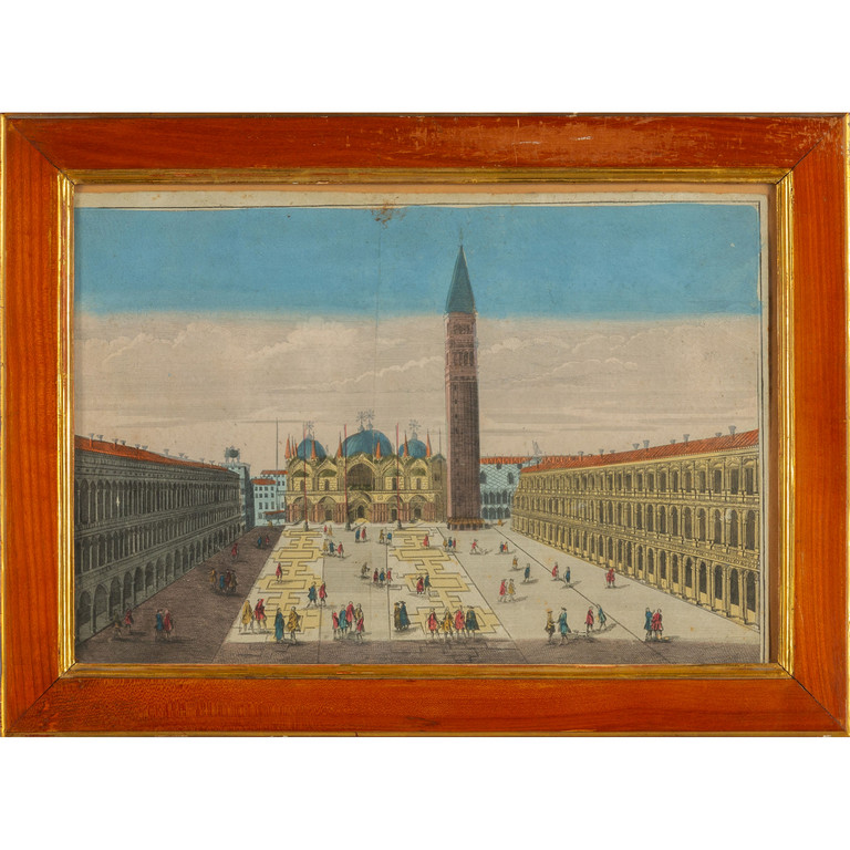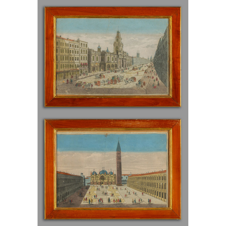'Piazza San Marco' e 'La borsa reale di Londra' coppia di stampe ricolorate