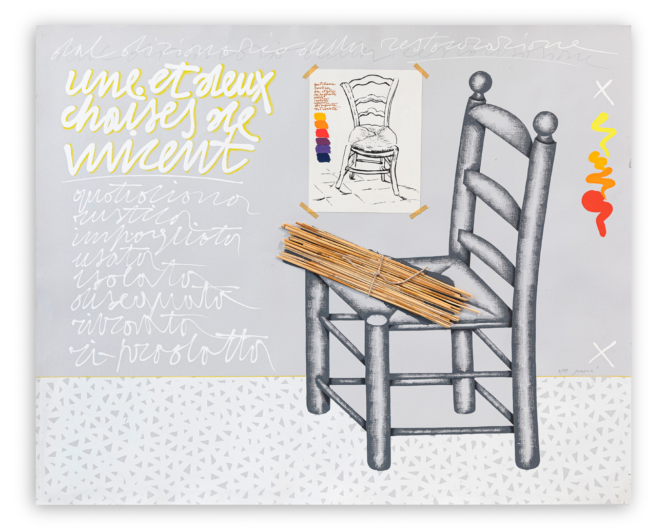 Serigrafia a colori con intervento a paglia applicata