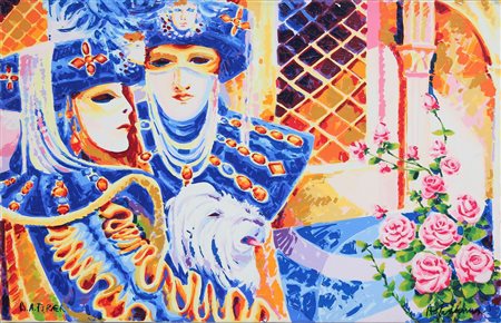 FACCINCANI ATHOS (n. 1951) Luce sul cardinale di Venezia. Serigrafia polimaterica su tela. Cm 84,00 x 54,00. Firma in basso a destra.
