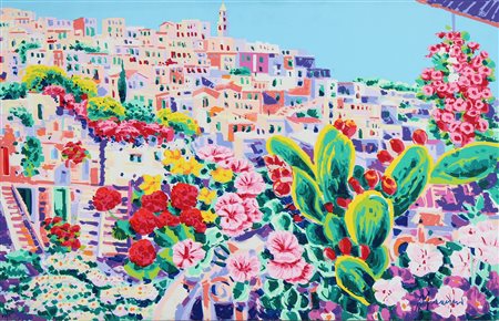 FACCINCANI ATHOS (n. 1951) I sassi vicino ad un sogno. Serigrafia polimaterica su tela. Cm 84,00 x 54,00. VII/L. Firma in basso a destra.