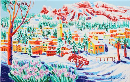 FACCINCANI ATHOS (n. 1951) Il sorbo uccellatore nella luce di Cortina. Serigrafia polimaterica su tela. Cm 84,00 x 54,00. Bon A Tirer. Firma in basso a destra.
