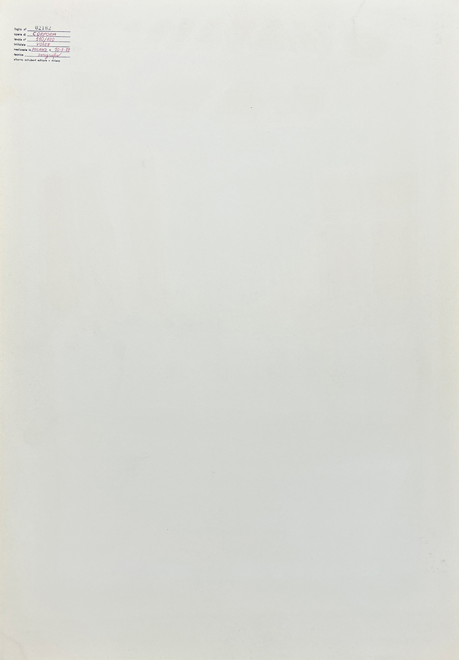 Opera originariamente parte della cartella 'Voies de la couleur - Signes du silence' recante testi introduttivi di Pierre Restany e Franco Russoli e 6 serigrafie di An+G1178tonio Corpora
